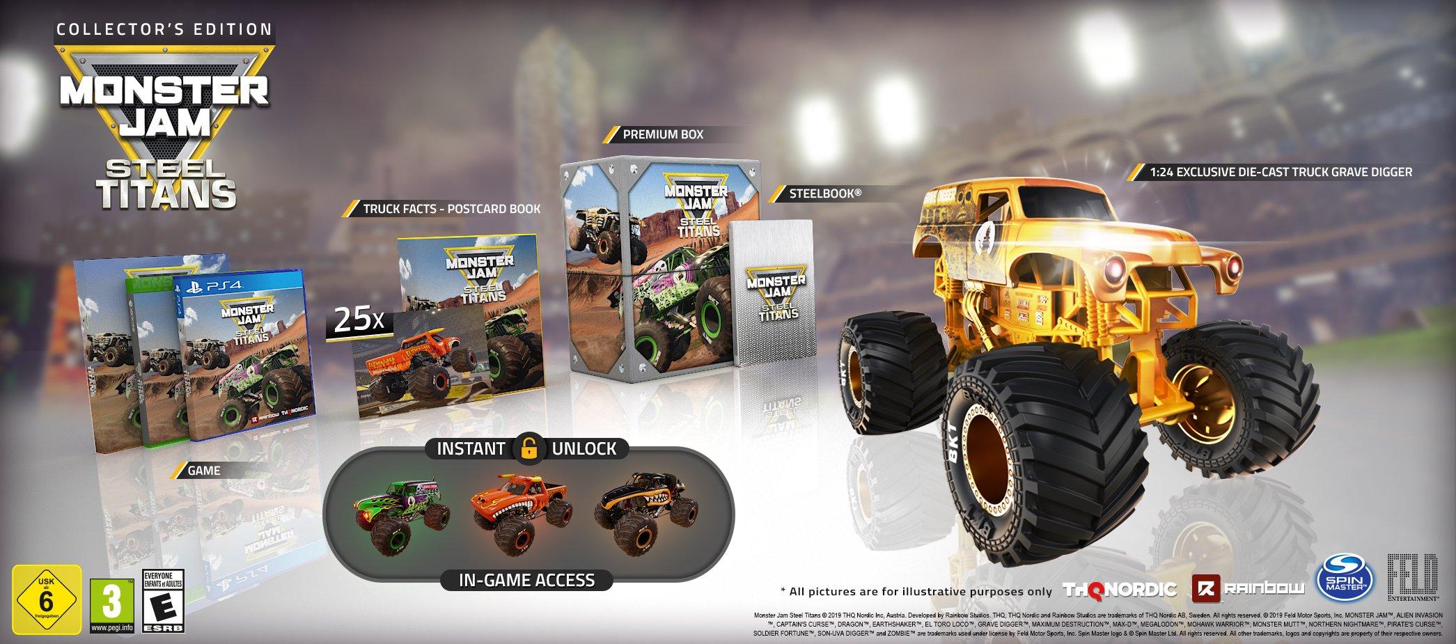 Twitter à ¤ÂªÃ ¤° Koch Media Espana Monster Jam Steel Titans Llegara A Pc Ps4 Y Xb1 El 25 De Junio La Edicion De Coleccionista Incluye El Vehiculo Gold Grave Digger Truck Y Reservando from pbs.twimg.com A listing of all known trucks in the game and how to unlock them. The total time the game should last the player is around 40 hours, with content to unlock for all the trucks, finding all the hidden . Only down fall is you have to unlock all the trucks which sucks. What trucks are in monster jam steel titans? Please subscribe =) road to 25k! Wildcards · blue thunder (unlocked after completing chapter 1) · higher education (unlocked after completing chapter 2) · ice cream man (unlocked after completing . 3 tracked players earned / 0.97% of all tracked players. All trucks & how to unlock them, tip & trick and more: